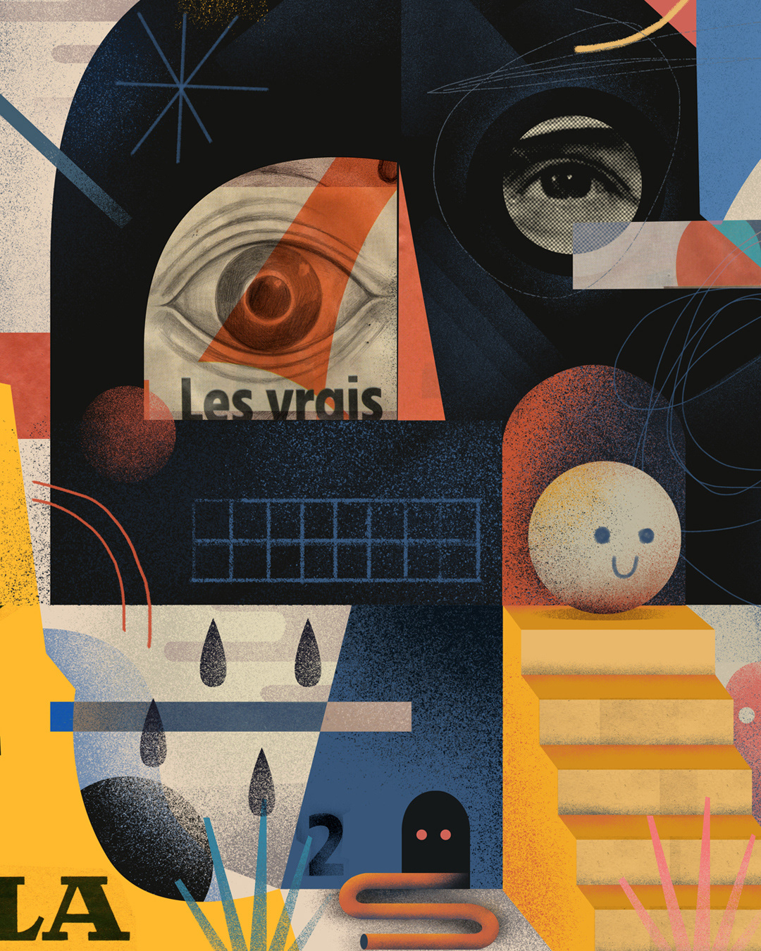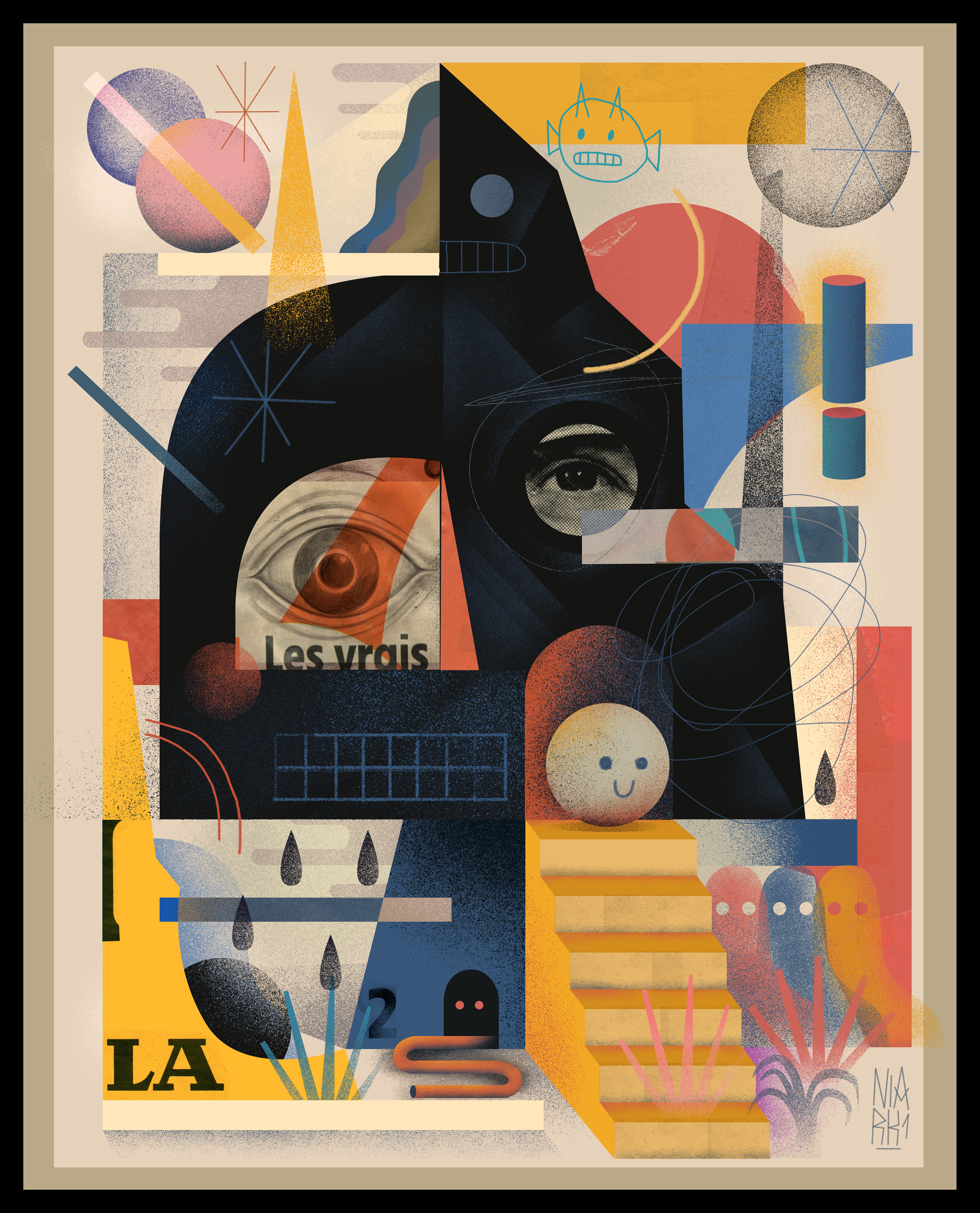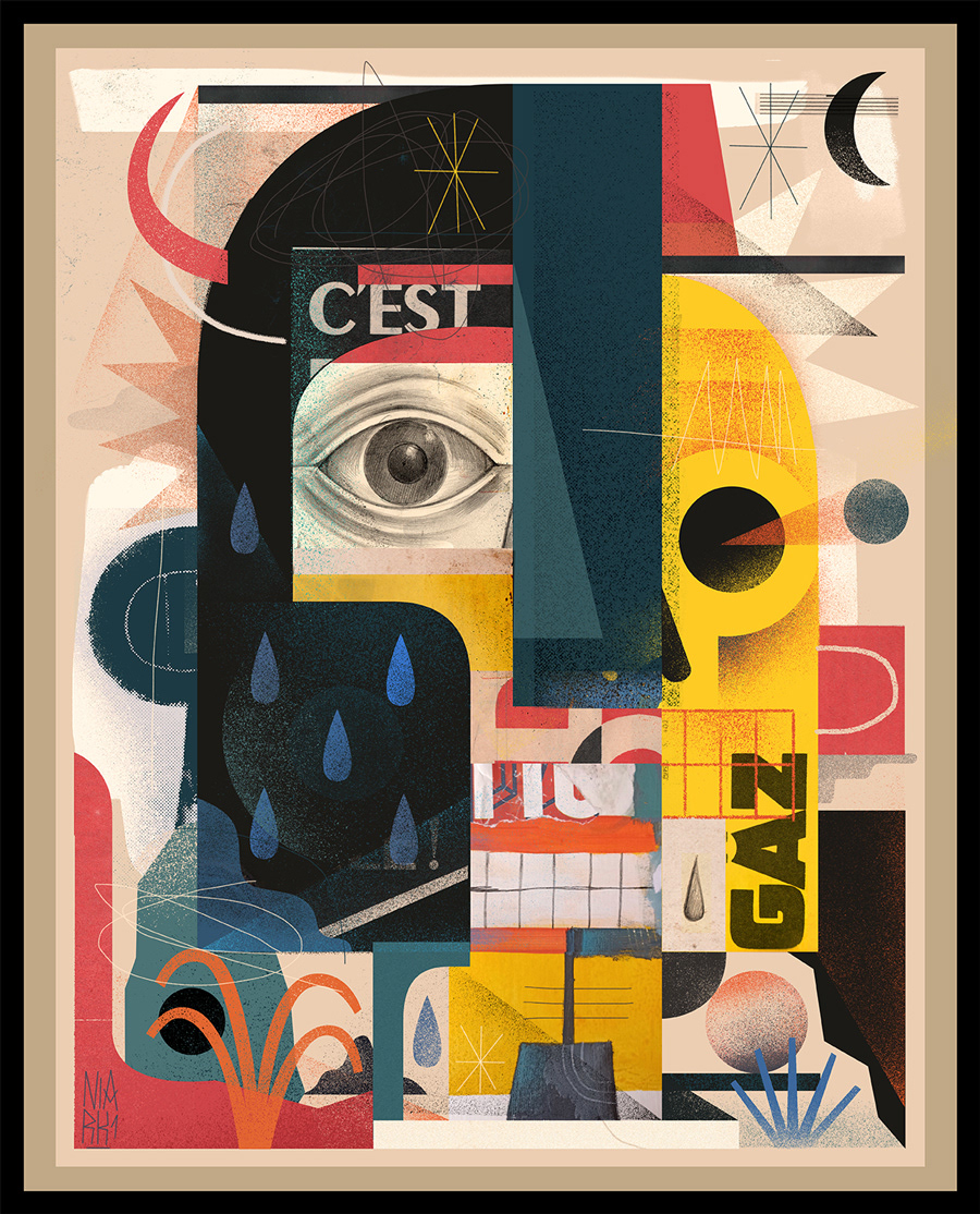 ' Weird Abstract Portraits' is a series of improvised digital collages made with elements of scanned hand drawings and old retro magazine advertisements mixed with digital graphic elements to create an abstract composition of surreal portraits.
