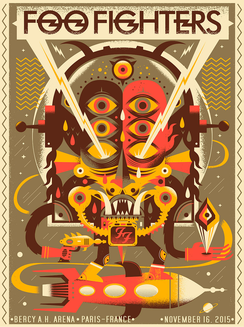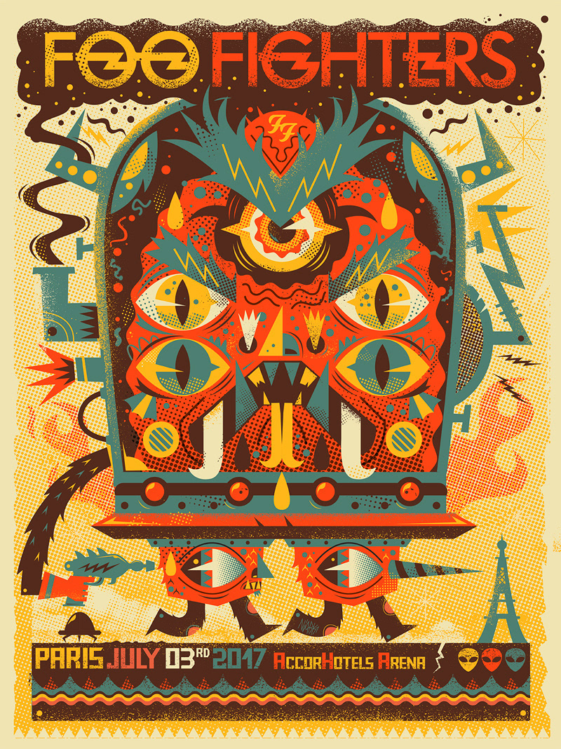 FOO FIGHTERS - AHA BERCY - PARIS - Official sreenprinted Gig Poster