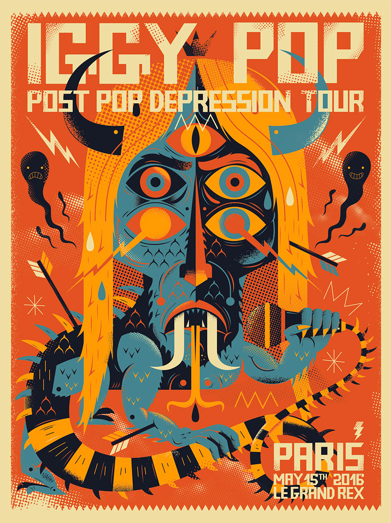 IGGY POP - LE GRAND REX - PARIS - Official sreenprinted Gig poster