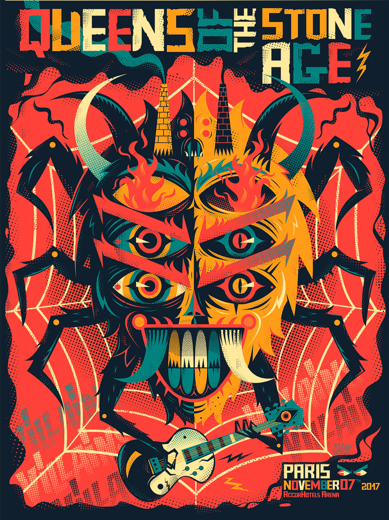 QUEENS OF THE STONE AGE - AHA BERCY - PARIS - Official sreenprinted Gig Poster ( variant )