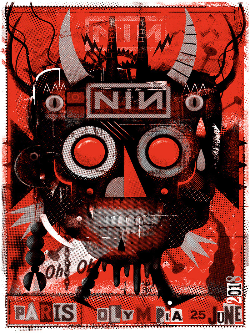 NINE INCH NAILS - OLYMPIA - PARIS - Official sreenprinted Gig Poster