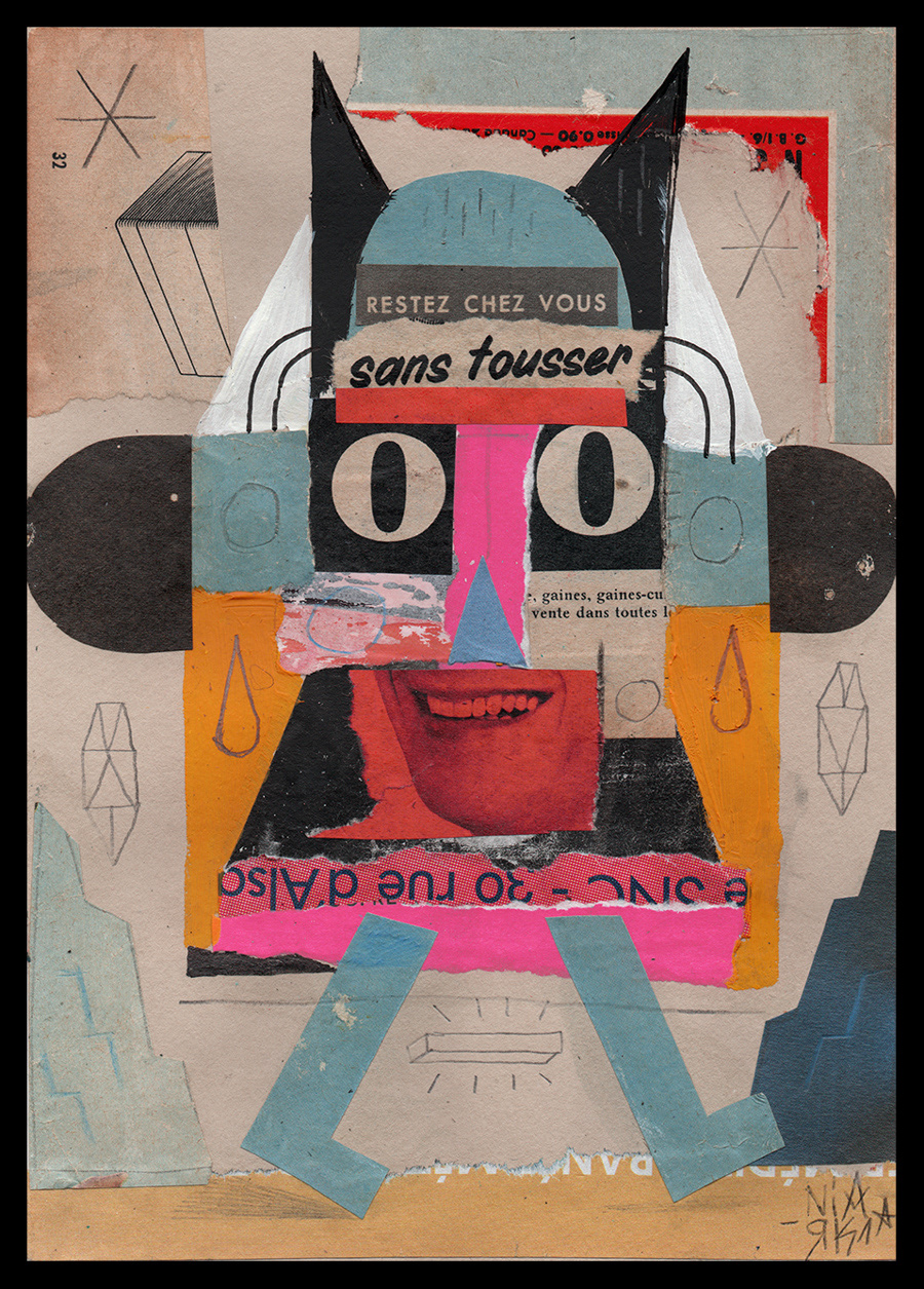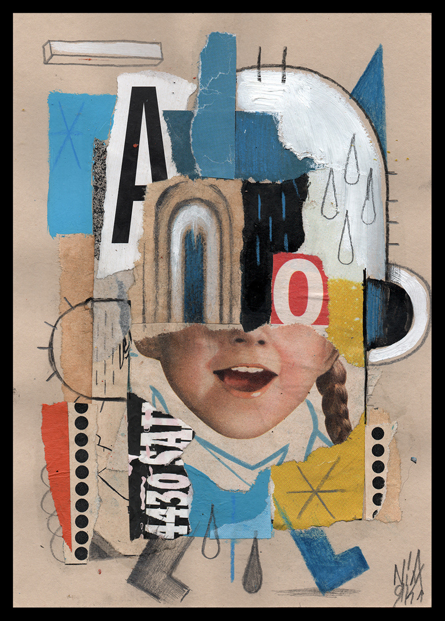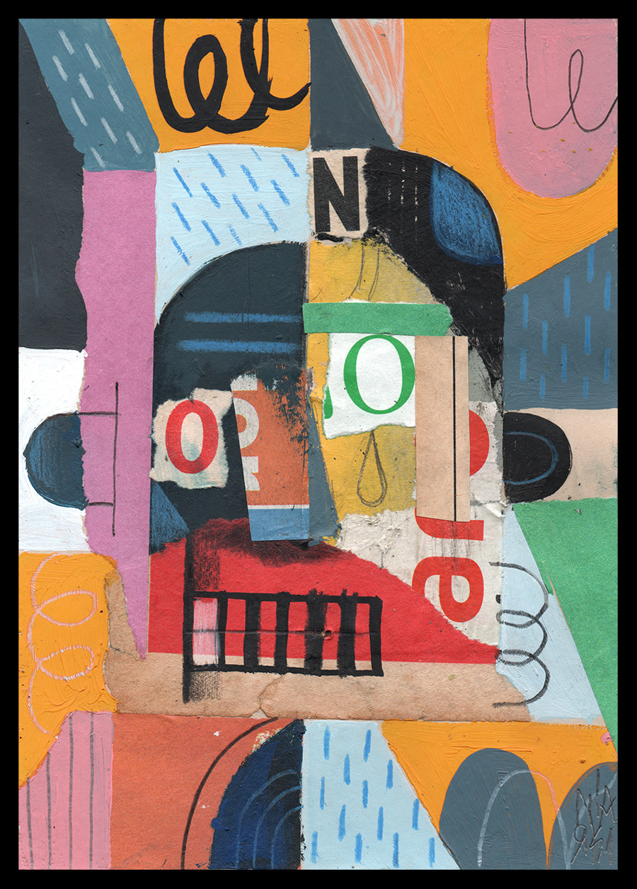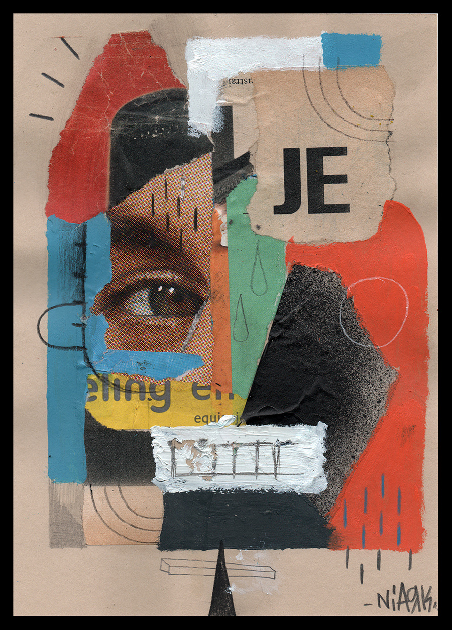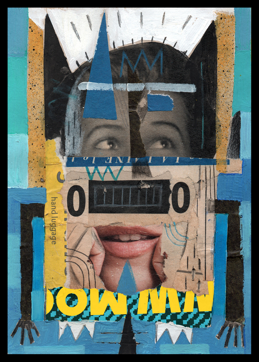 Improvised Analog Collages mixed with acrylic paint, ink & pencils on " natural " A5 250g/m paper