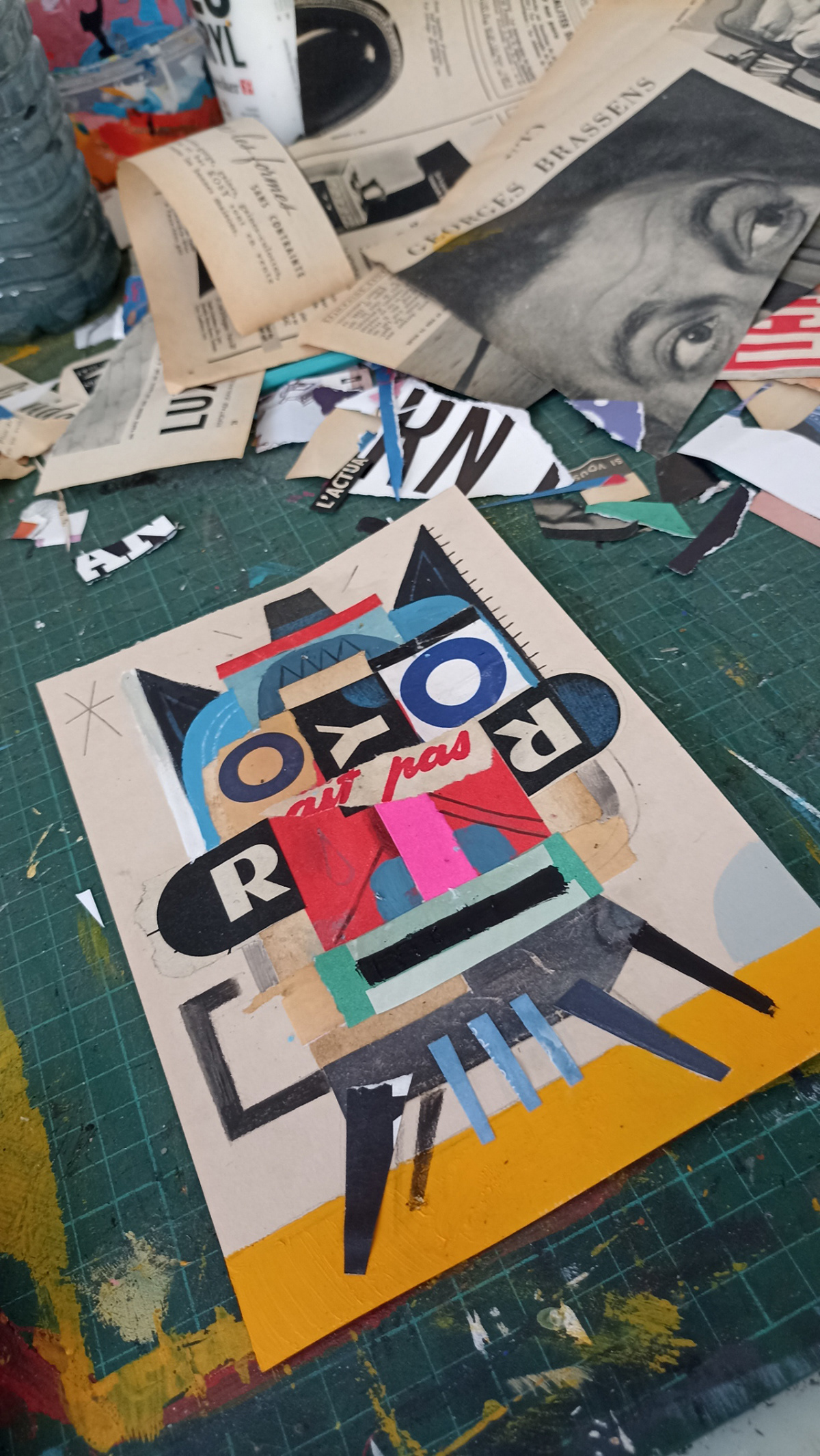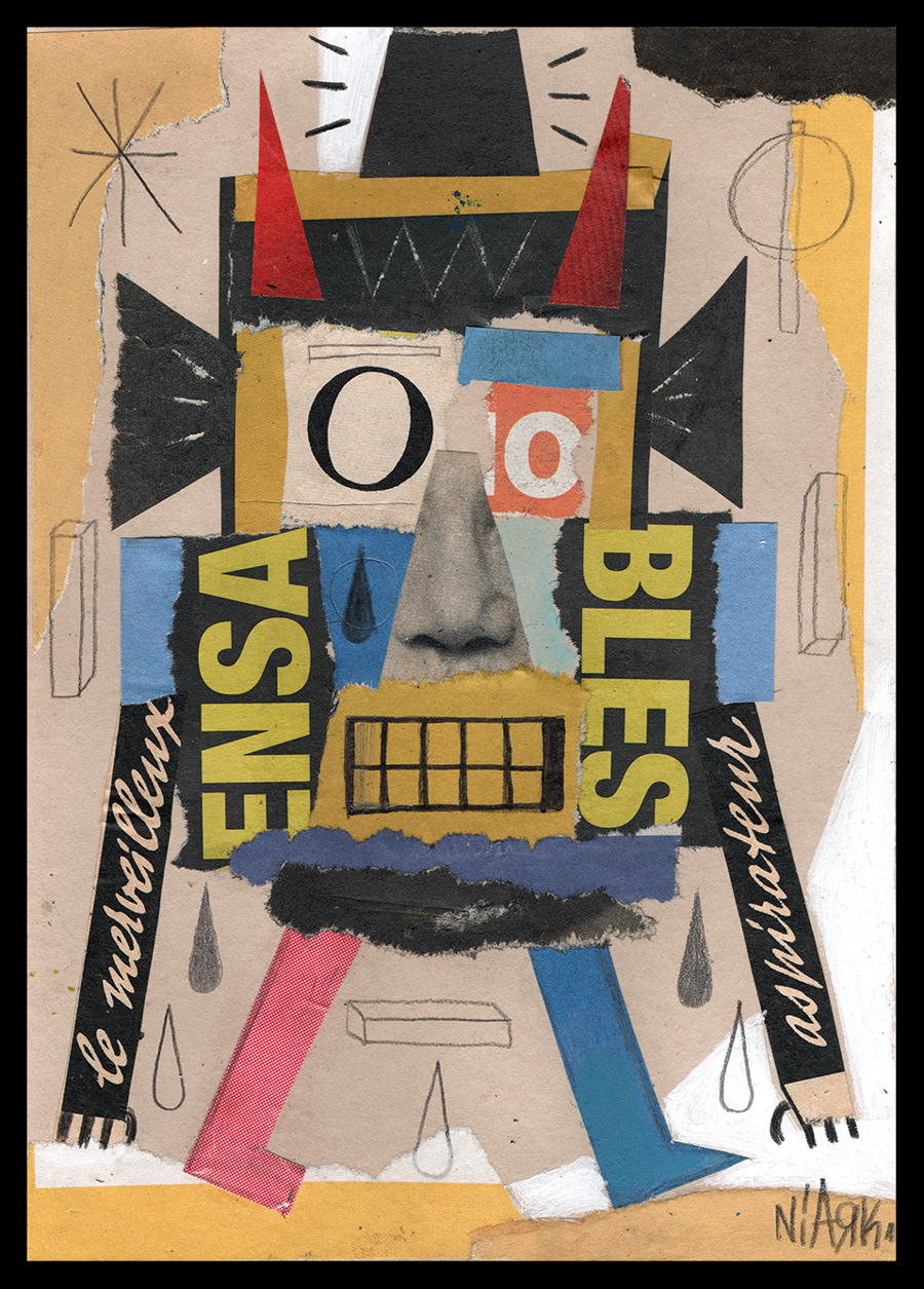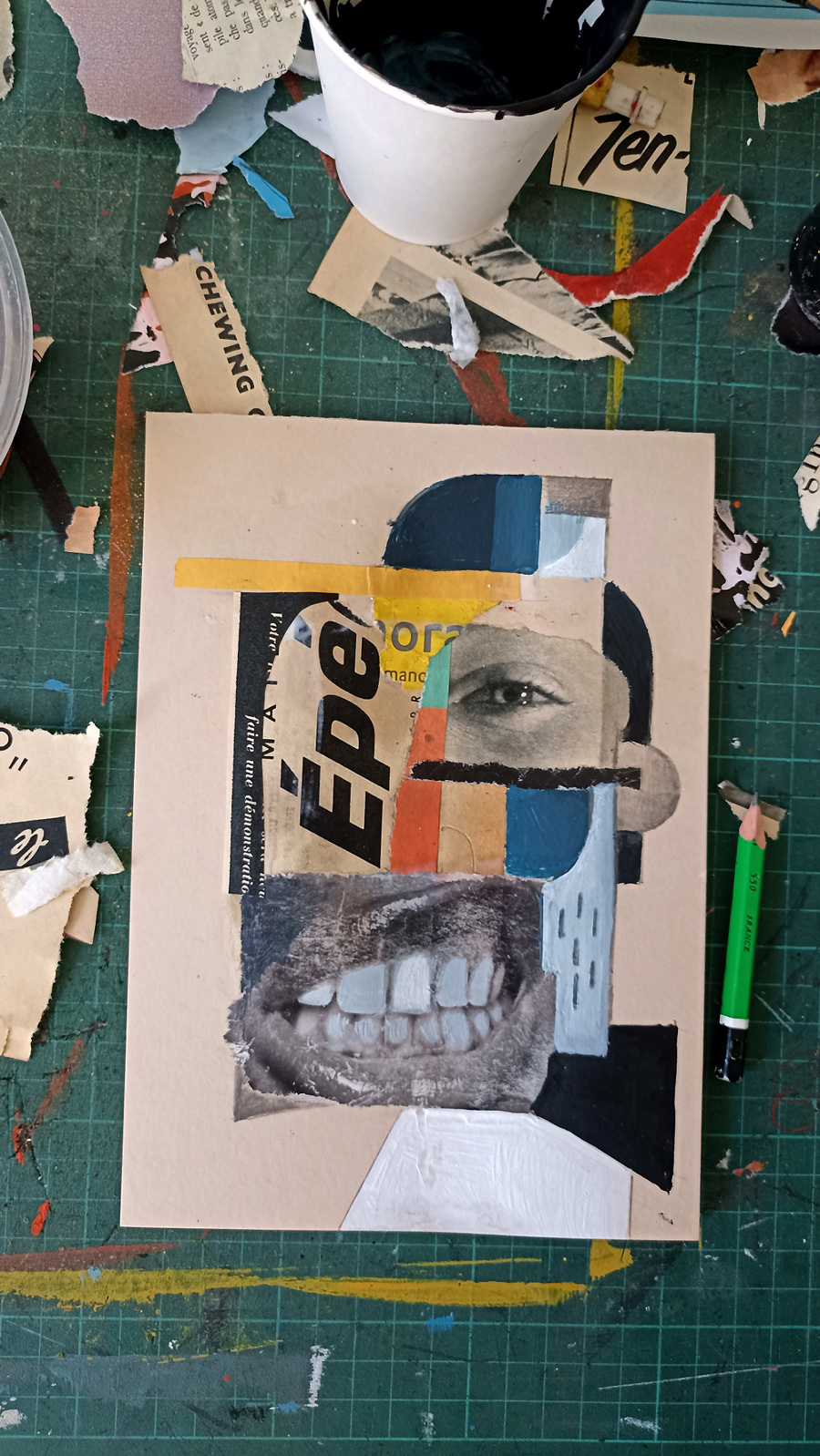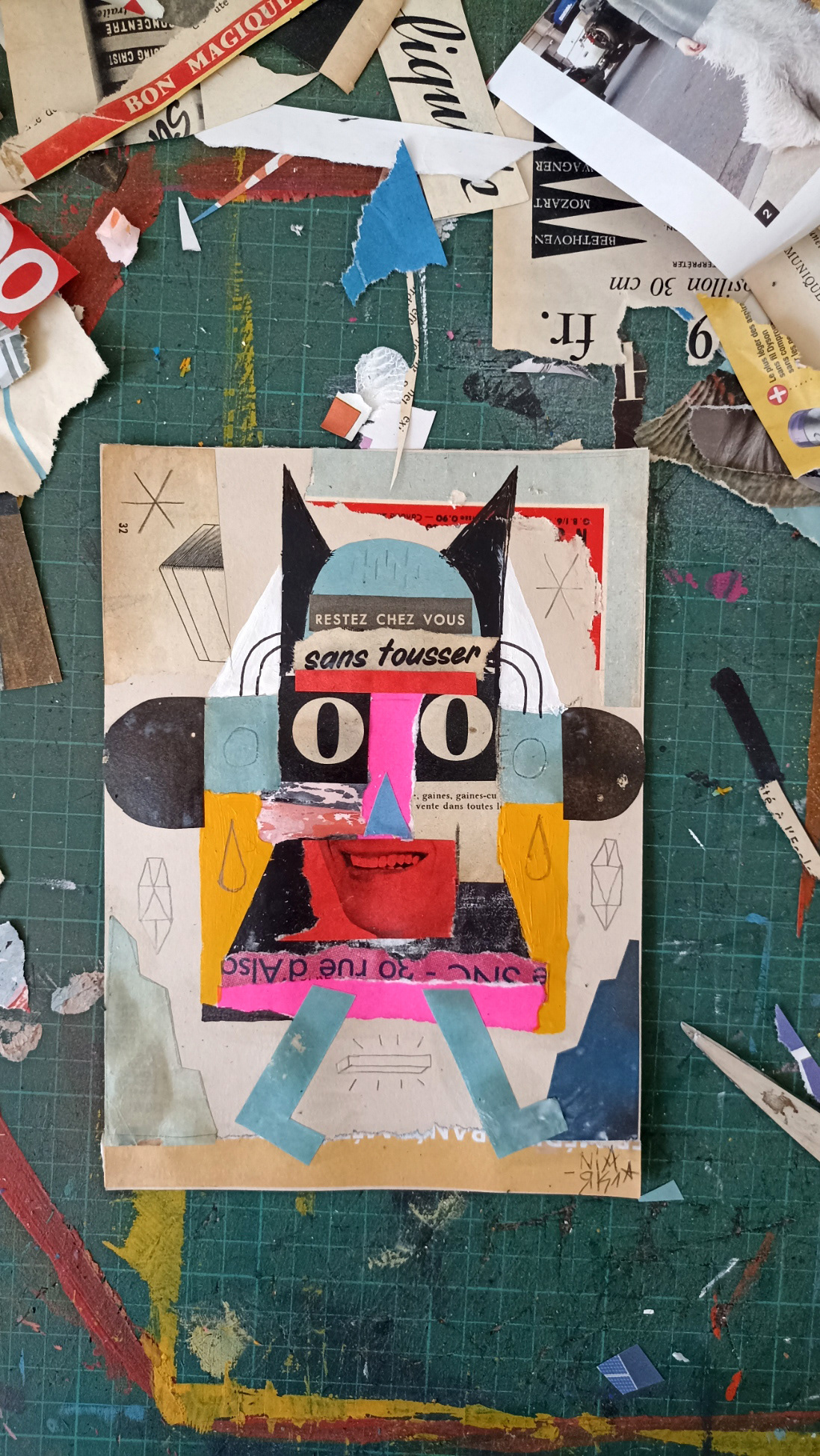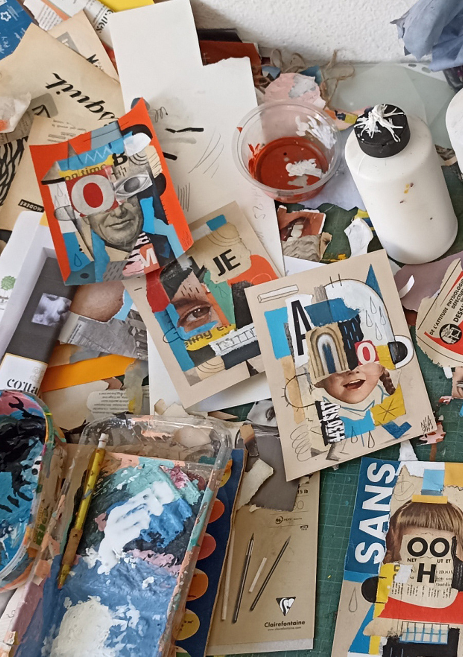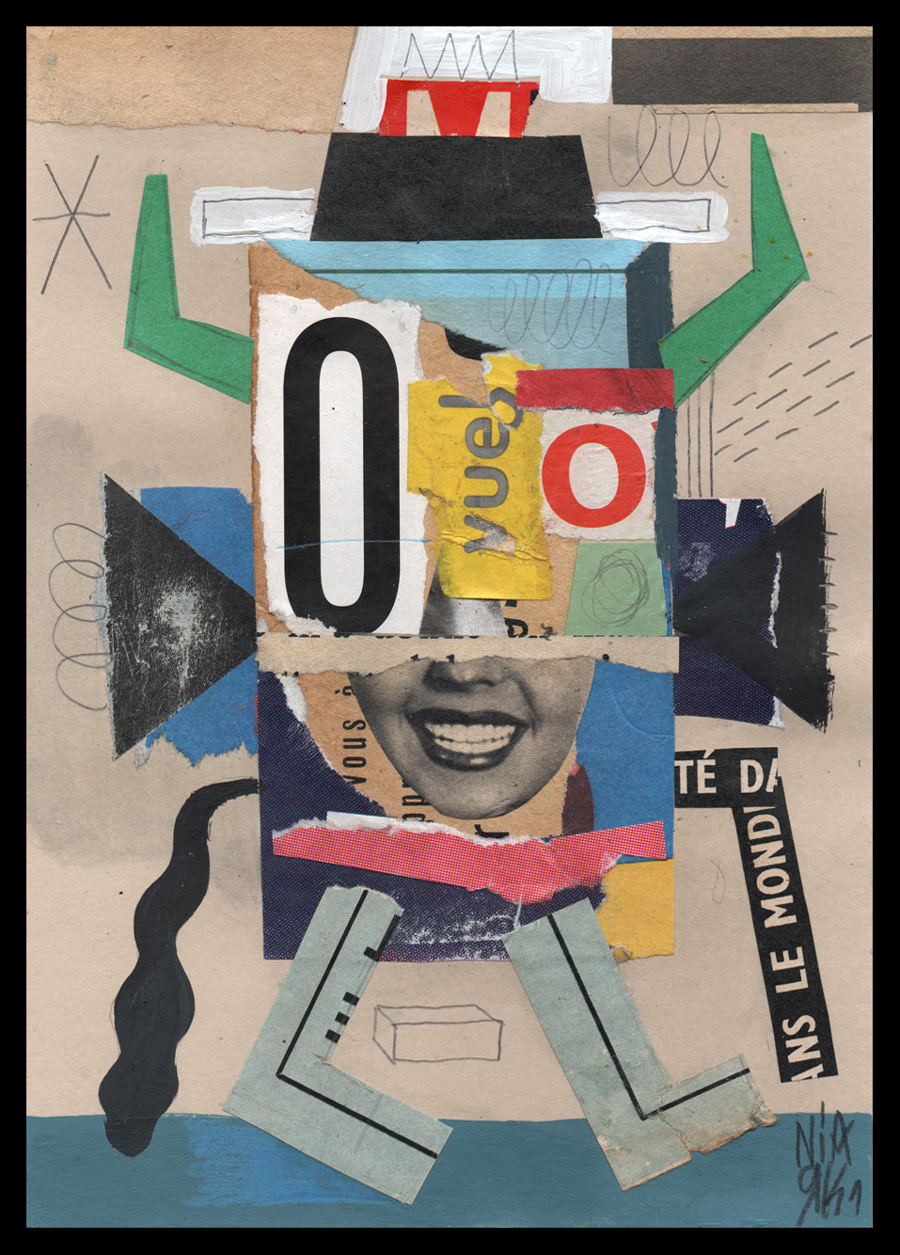 Improvised Analog Collages mixed with acrylic paint, ink & pencils on " natural " A5 250g/m paper