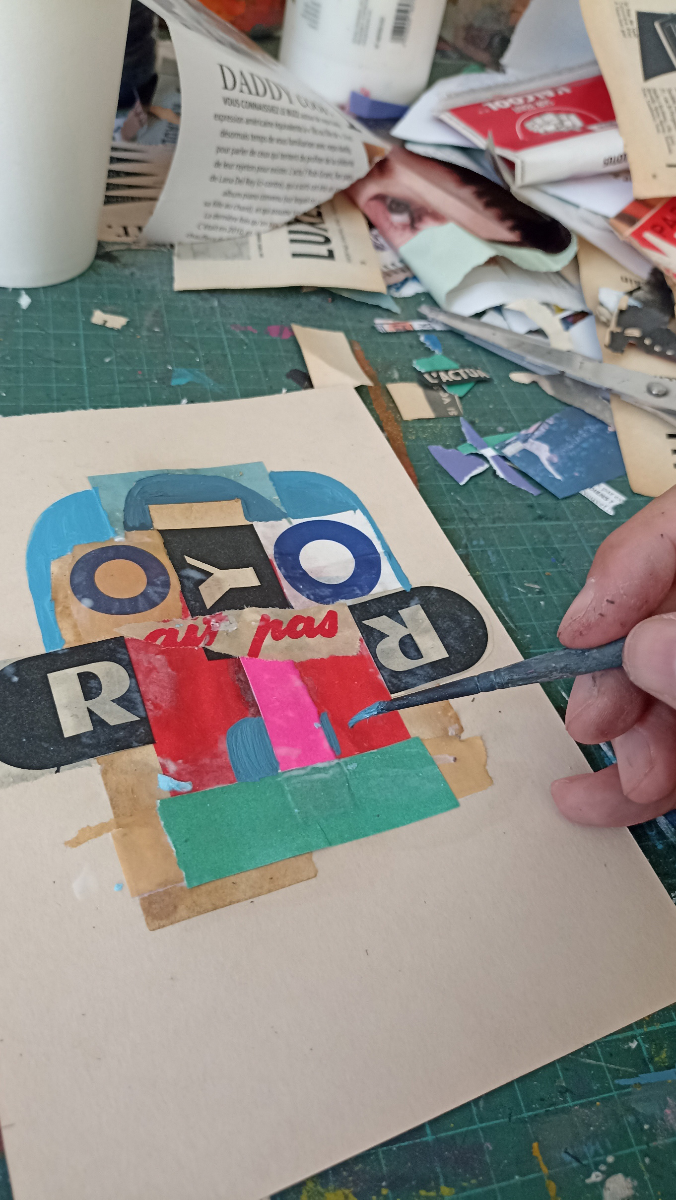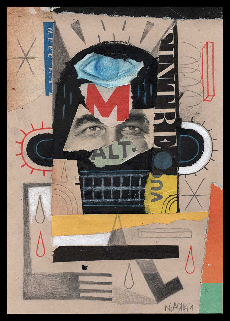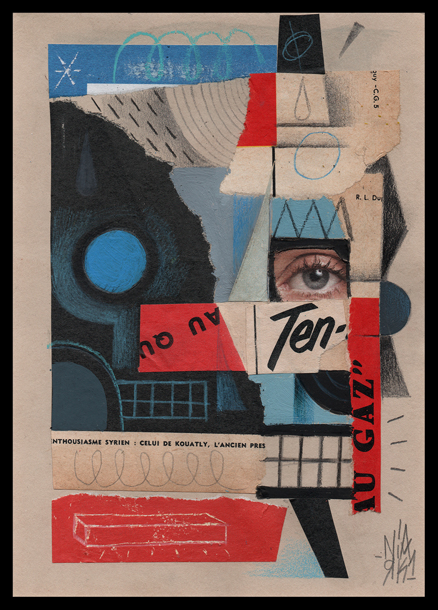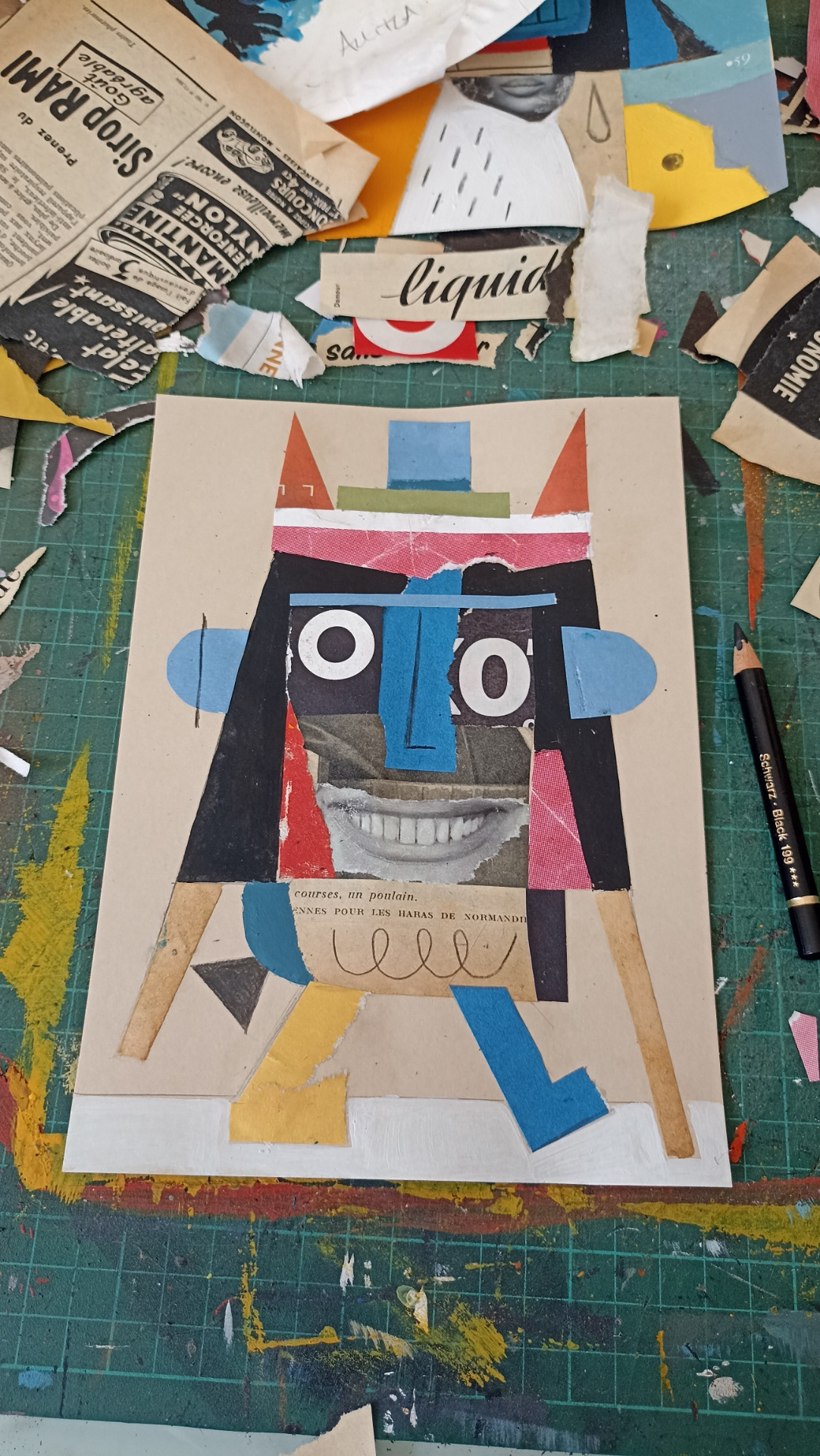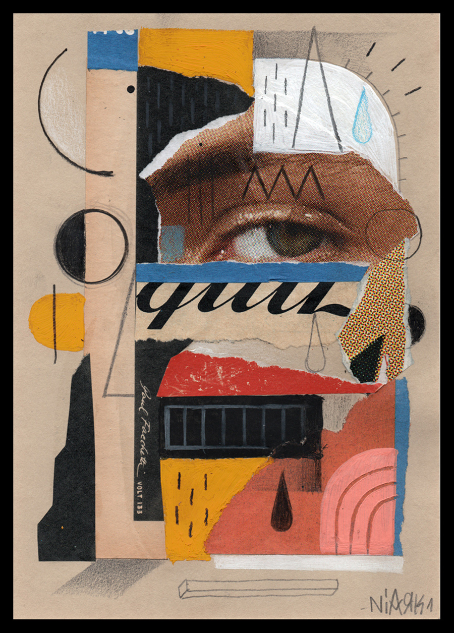Improvised Analog Collages mixed with acrylic paint, ink & pencils on " natural " A5 250g/m paper