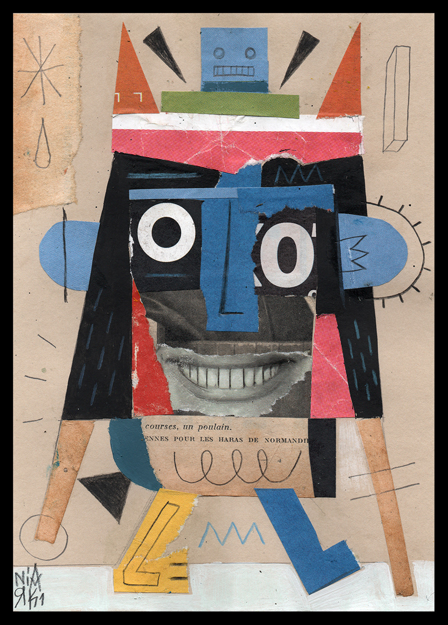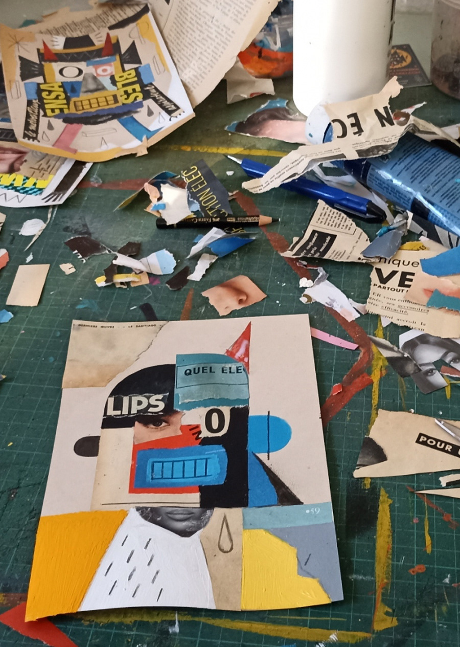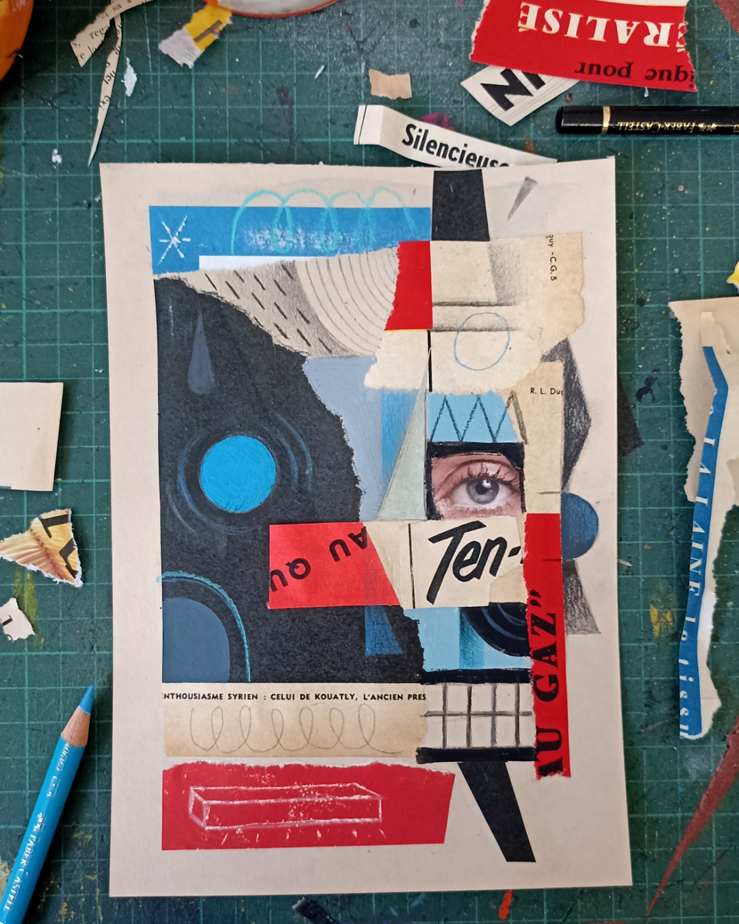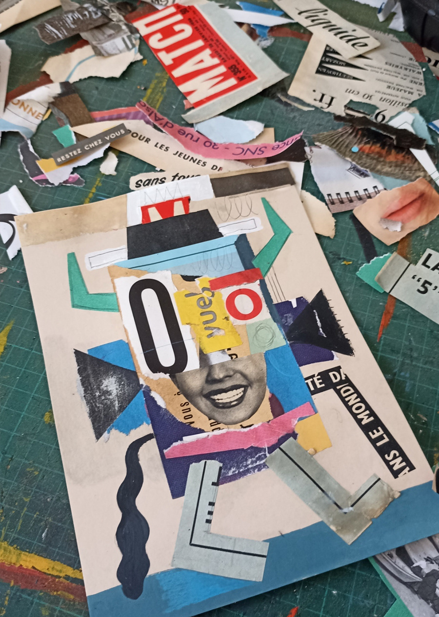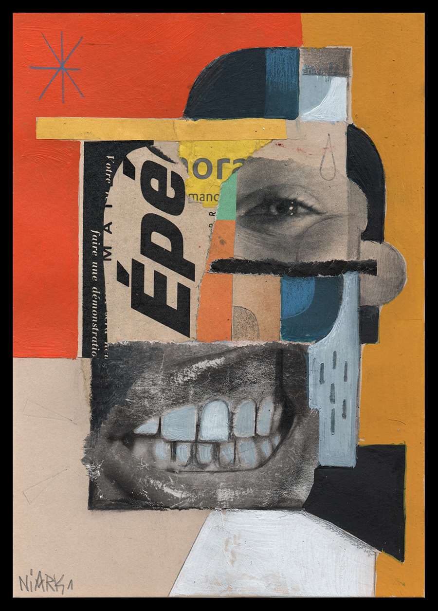 Improvised Analog Collages mixed with acrylic paint, ink & pencils on " natural " A5 250g/m paper