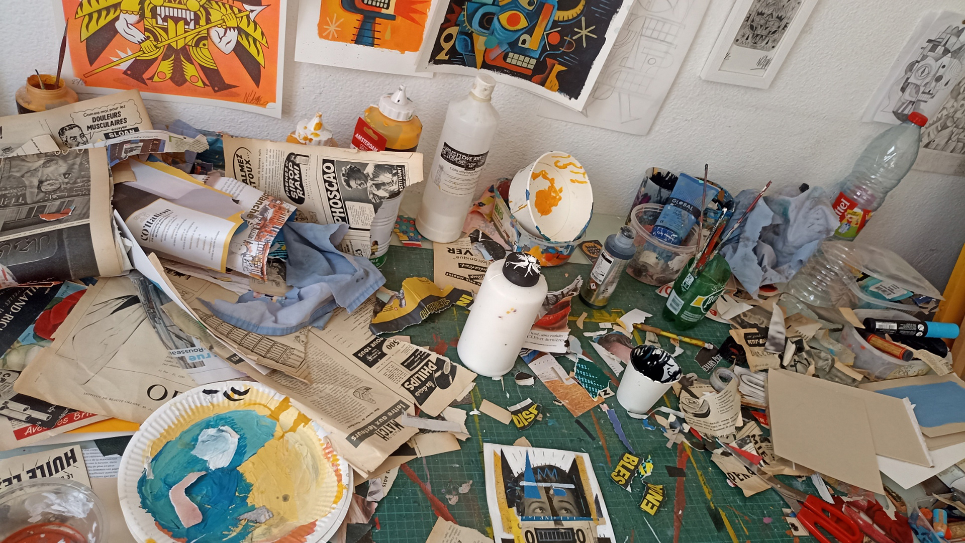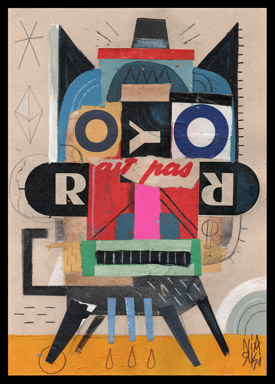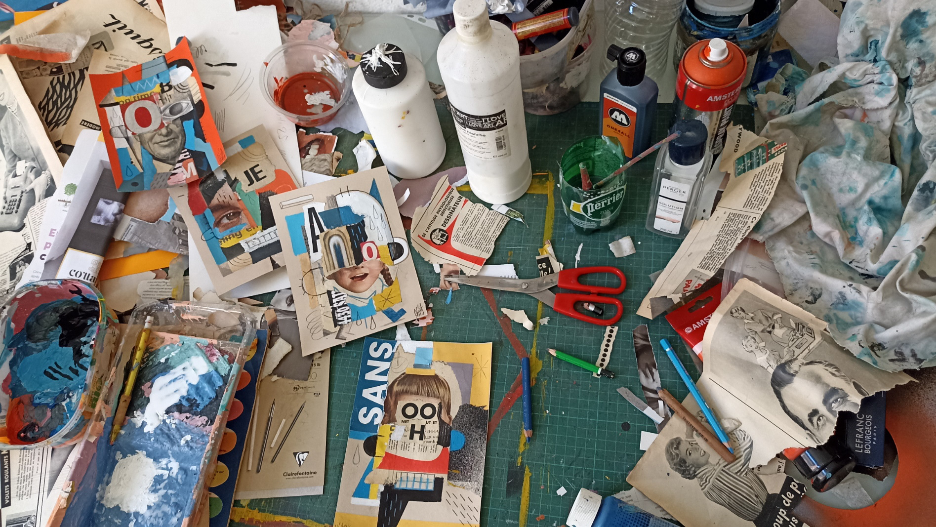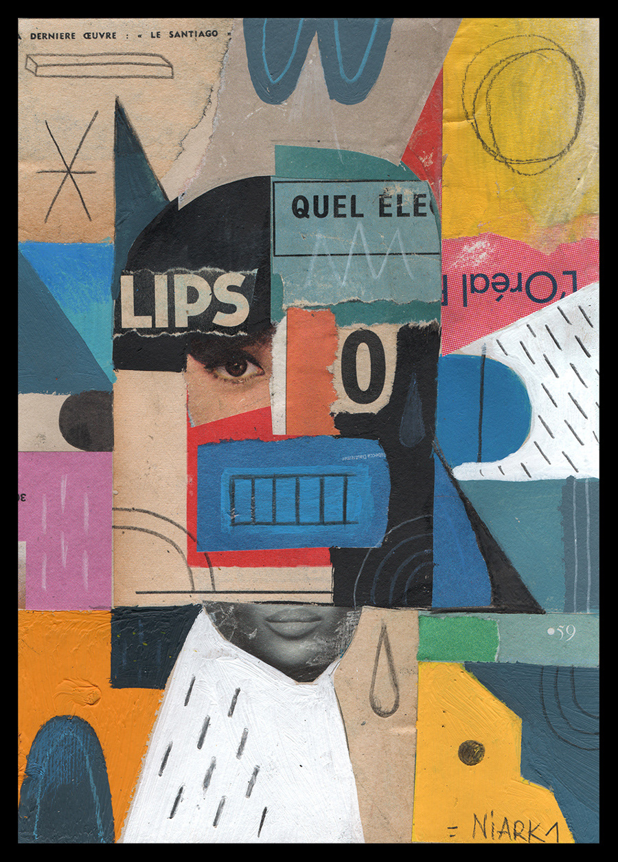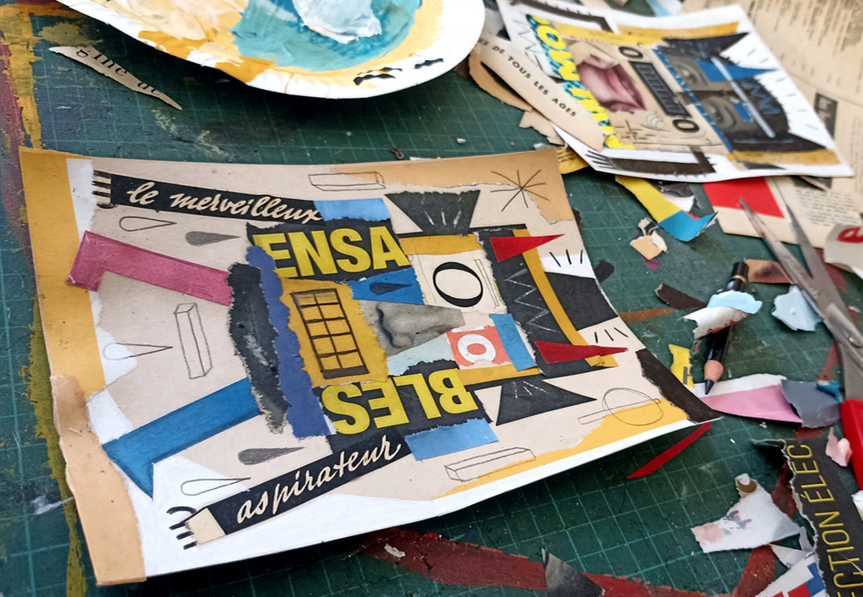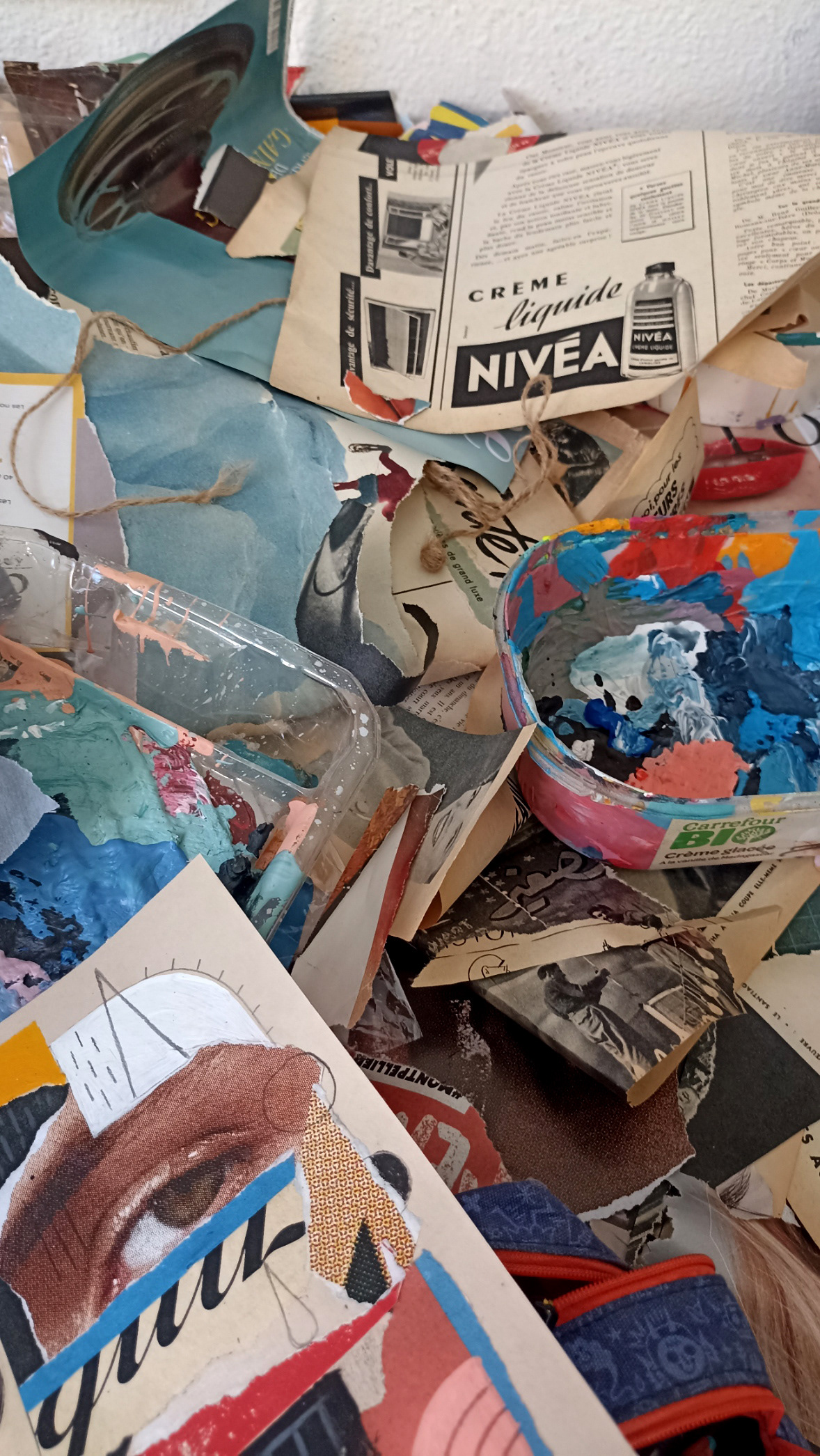 Improvised Analog Collages mixed with acrylic paint, ink & pencils on " natural " A5 250g/m paper