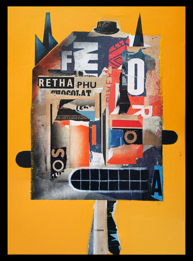 ' RETHA ' - Acrylic painting, collages & pencils on stretched canvas. 46 X 65 cm