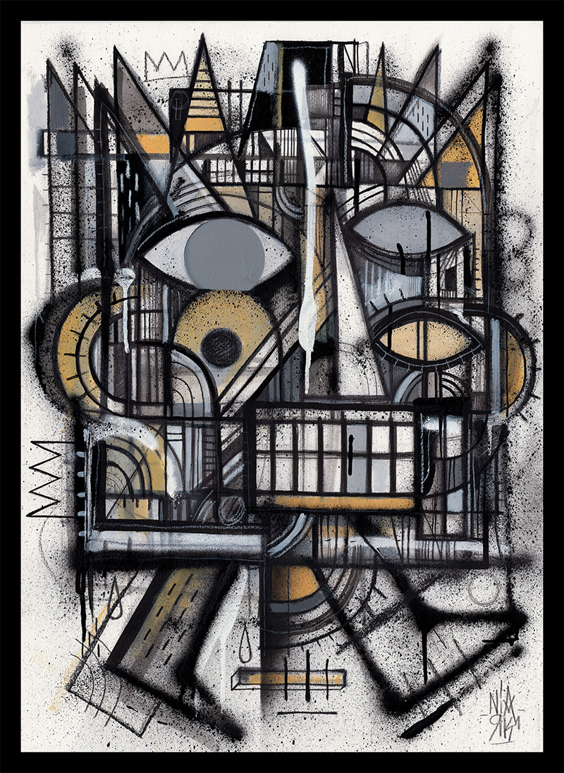 ' Big Head Walking ' - Ink, spray, marker & pencils on 320g/m art paper - 50x70 cm